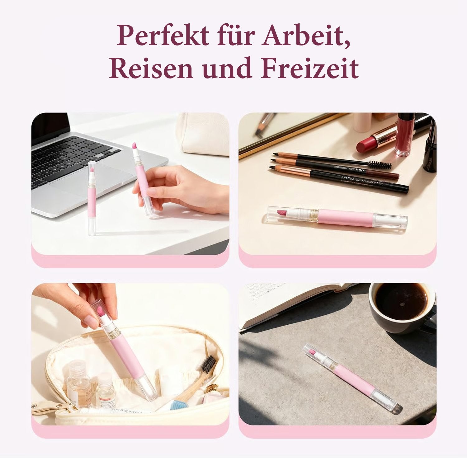 Dieser kompakte und leichte Nagelhautölstift ist ideal für schnelle Ausbesserungen im Büro, auf Reisen oder nach der Maniküre. Einfach am Sockel drehen, um das Öl freizusetzen, die Spitze entlang der Nagelränder gleiten lassen und jederzeit und überall professionelle Nagelpflege genießen.